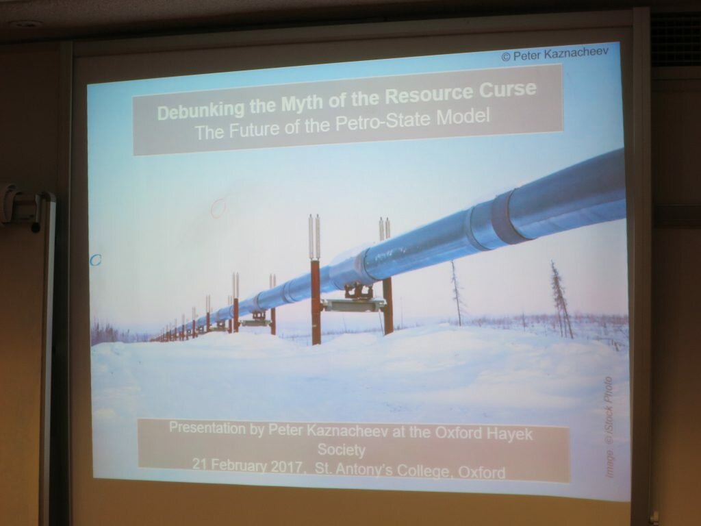 Many thanks to Peter Kaznacheev, Director of the Centre for Resource Economics, who came to speak to us this week on the future of petro-states. The talk, entitled “Debunking the Myth of the Resource Curse”, was very insightful in explaining how oil-dependant economies adapt (or fail to adapt) to the new reality of cheaper oil.